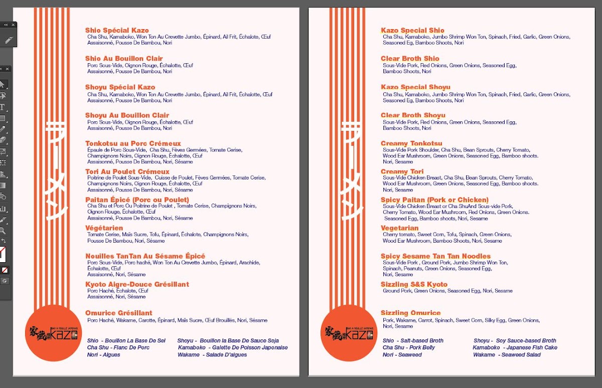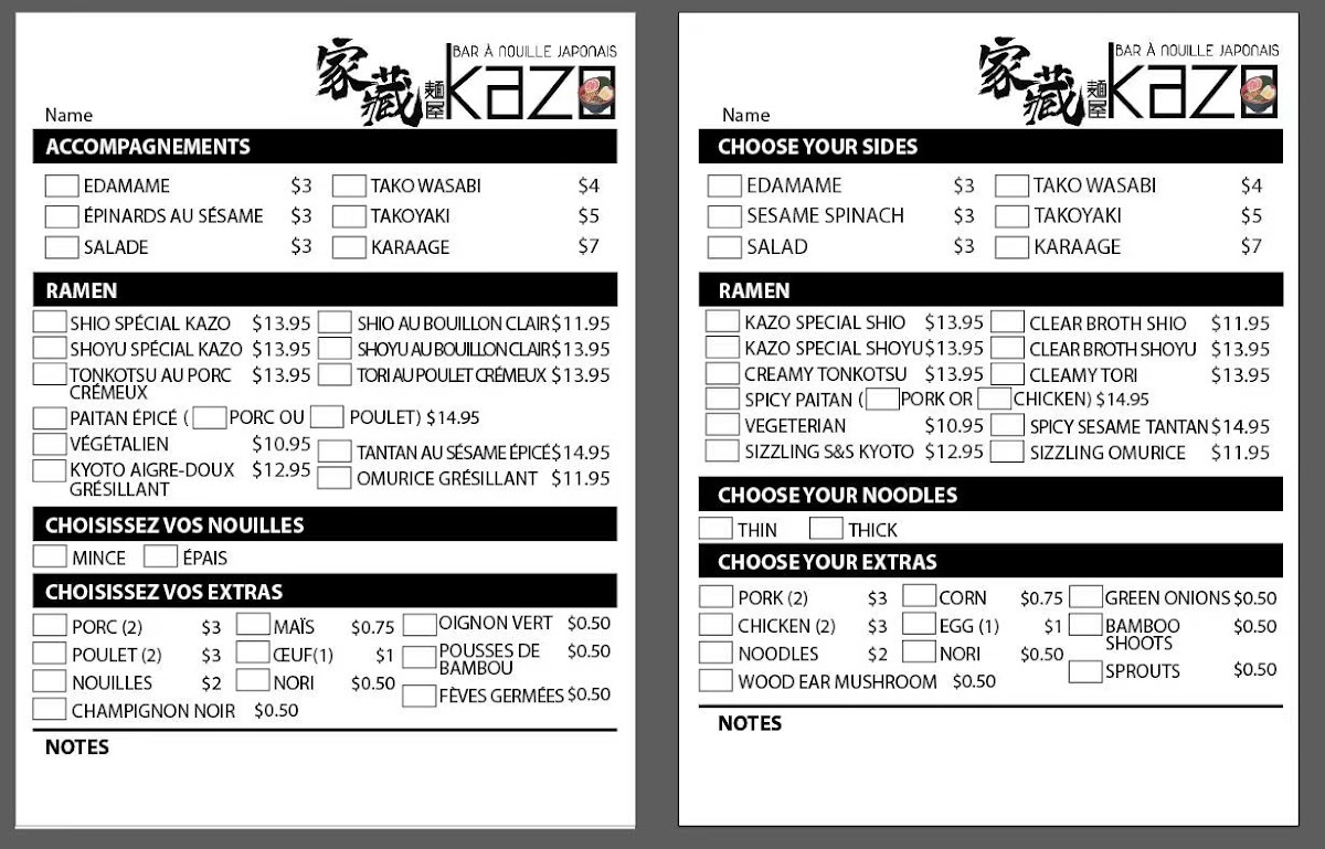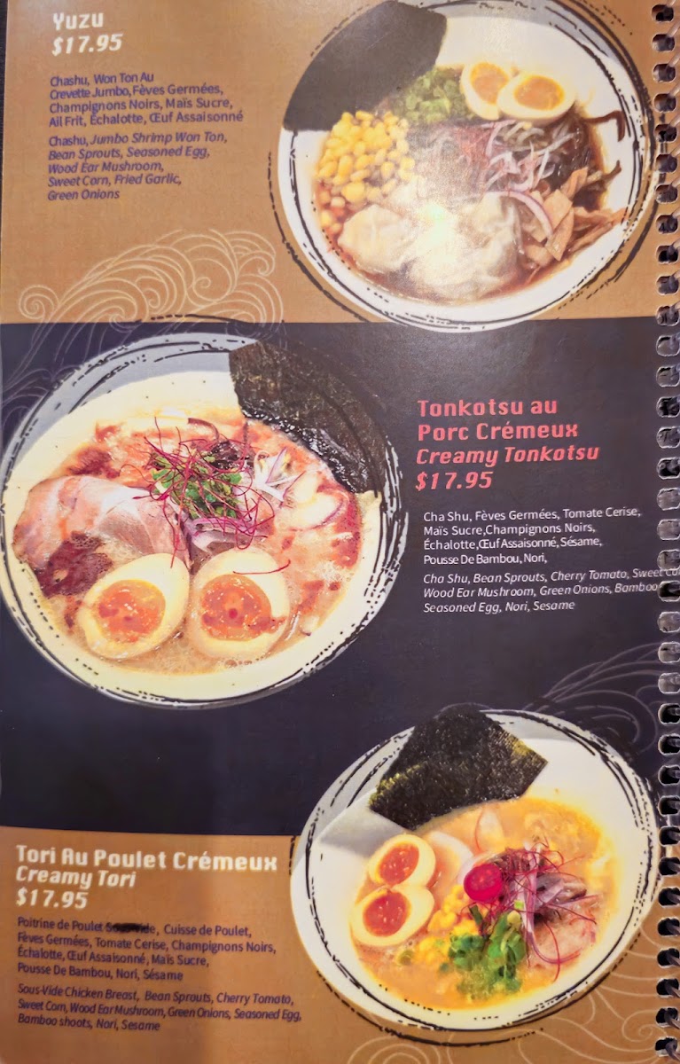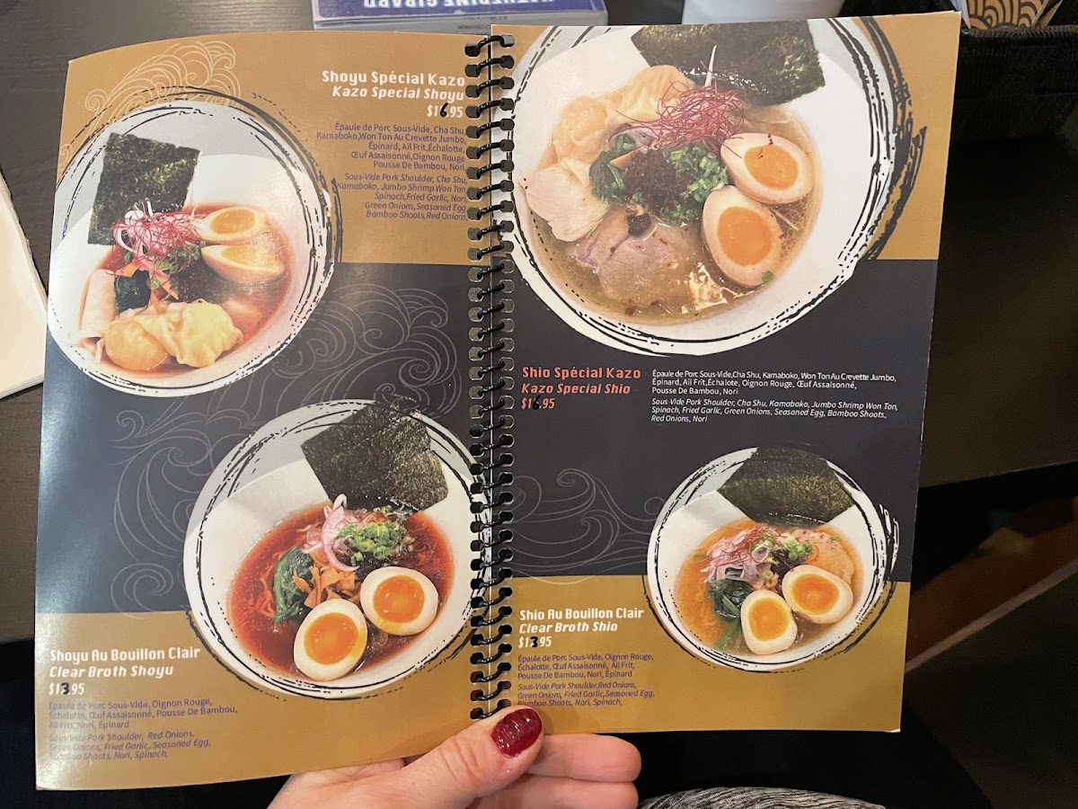 Welcome to Kazo Ramen Lasalle, a cozy culinary gem nestled at 7569 Newman Blvd, Lasalle, Quebec. Known for its authentic ramen offerings, Kazo is a haven for noodle lovers. The menu boasts standout dishes like the Gyushio Bœuf Ramen, topped with succulent beef, soft egg, and a delightful blend of fresh ingredients for CA$18.95. The Creamy Tori Ramen is another treat, featuring tender chicken and aromatic mushrooms that create a comforting bowl of goodness, also priced at CA$18.95.
